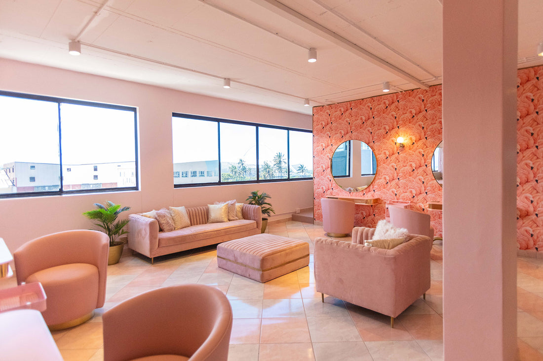 The client loved pink, and that was the only stipulation. Using that as a starting point, we wanted to create a space based around an older, opulent point in time. The retro '40s and '50s Miami fitted this bill perfectly. Durban’s rich history of Art Deco influences also made it feel familiar.