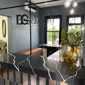 The combination of a male and female salon, Bryde and Groom, gave the option for bridal party’s to book out the entire adjacent cafe precinct for events, utilizing the salon for pre party grooming and the cafe lounge space to socialise whilst getting ready for the big event.