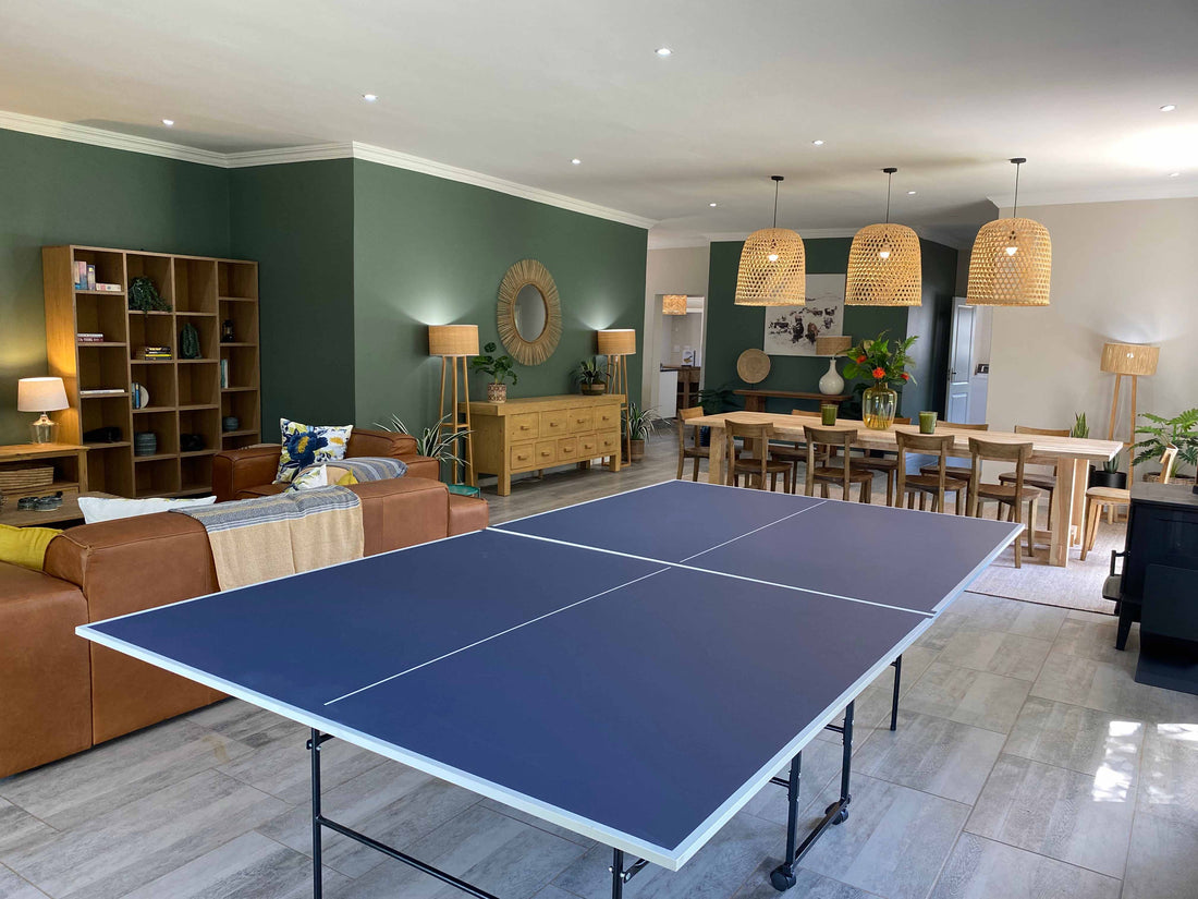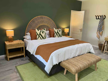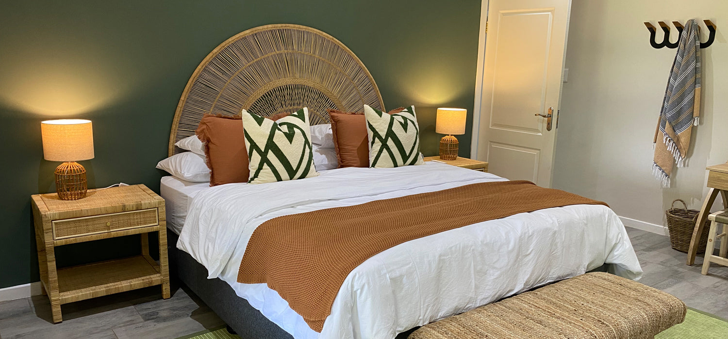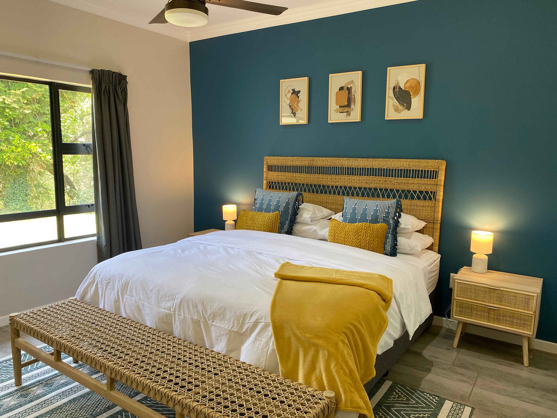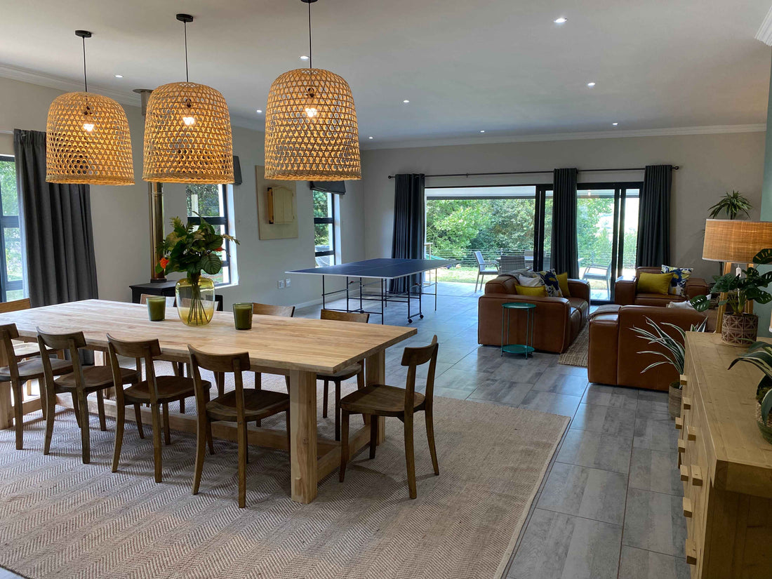 The cottage was an old farmhouse that had been gutted by the owners who wanted to have it as a rental property. We literally had a blank white canvas to work with. The cottage has 4 bedrooms, all en-suite, and two kids' rooms. An open-plan dining, lounge and games area with ample space for socialising. Glass sliding doors open out from the living room onto an outdoor patio that looks out towards a beautiful dam.