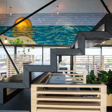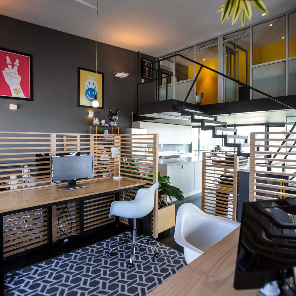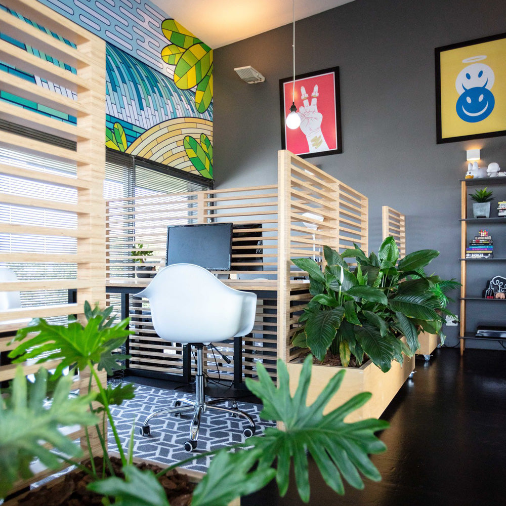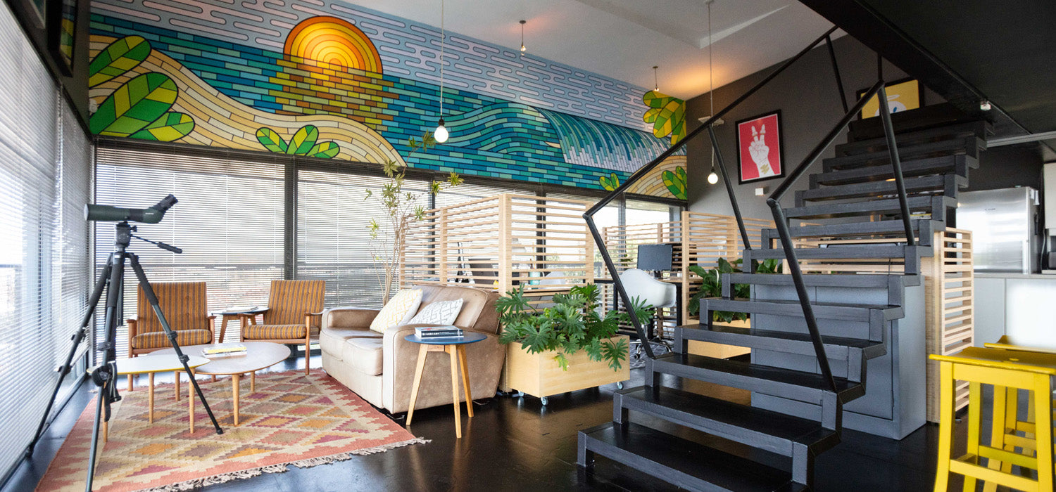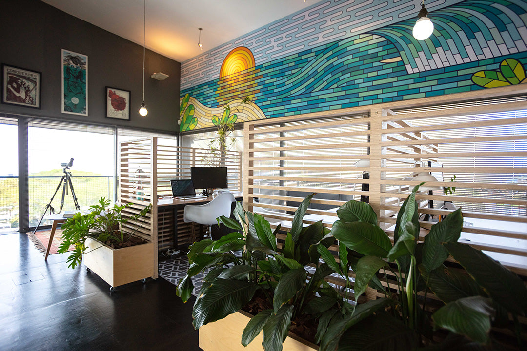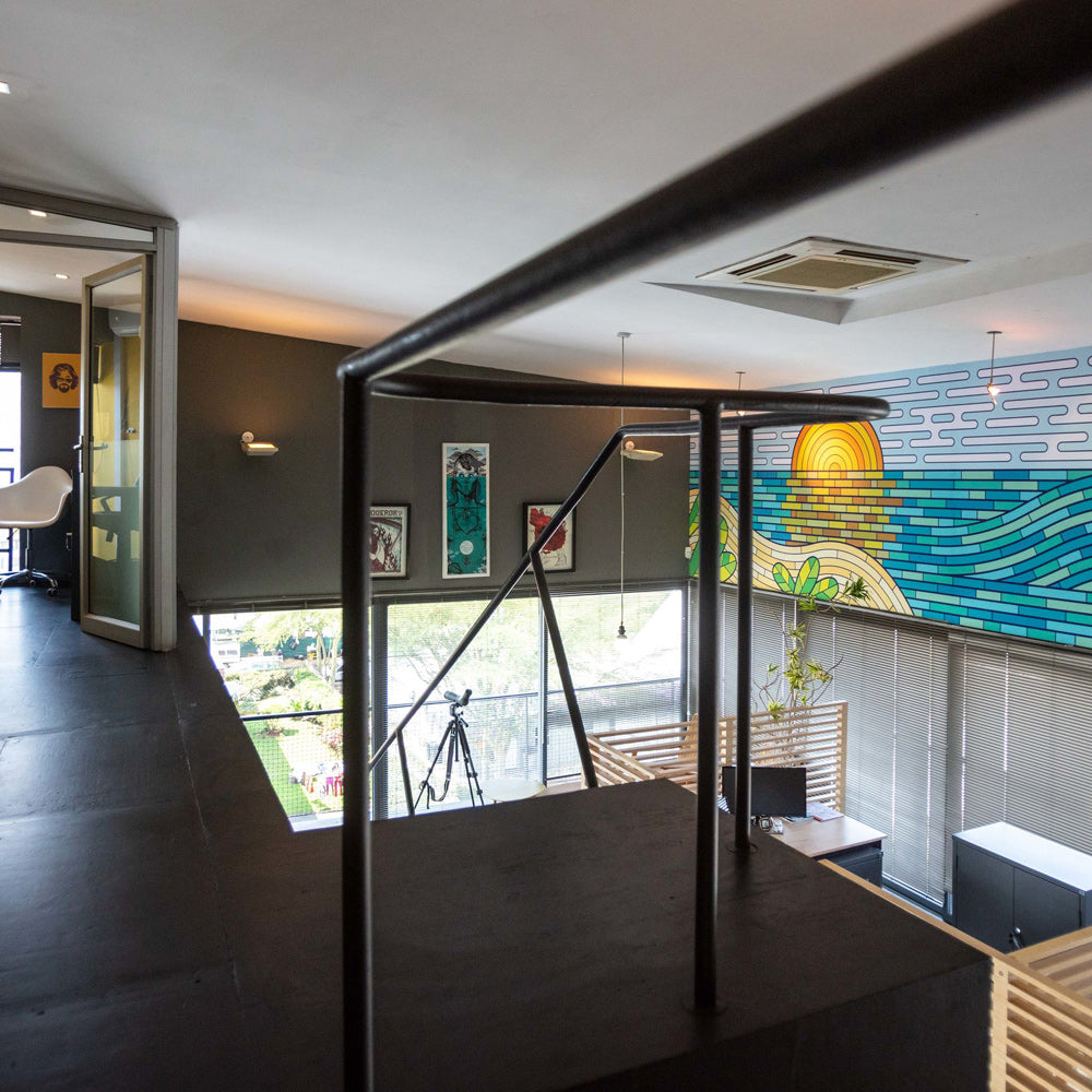 The brief was to create a shared workspace that had a low-key and homely feel. The inspiration for the space was a Friday morning in Durban, filled with sun and surf.
