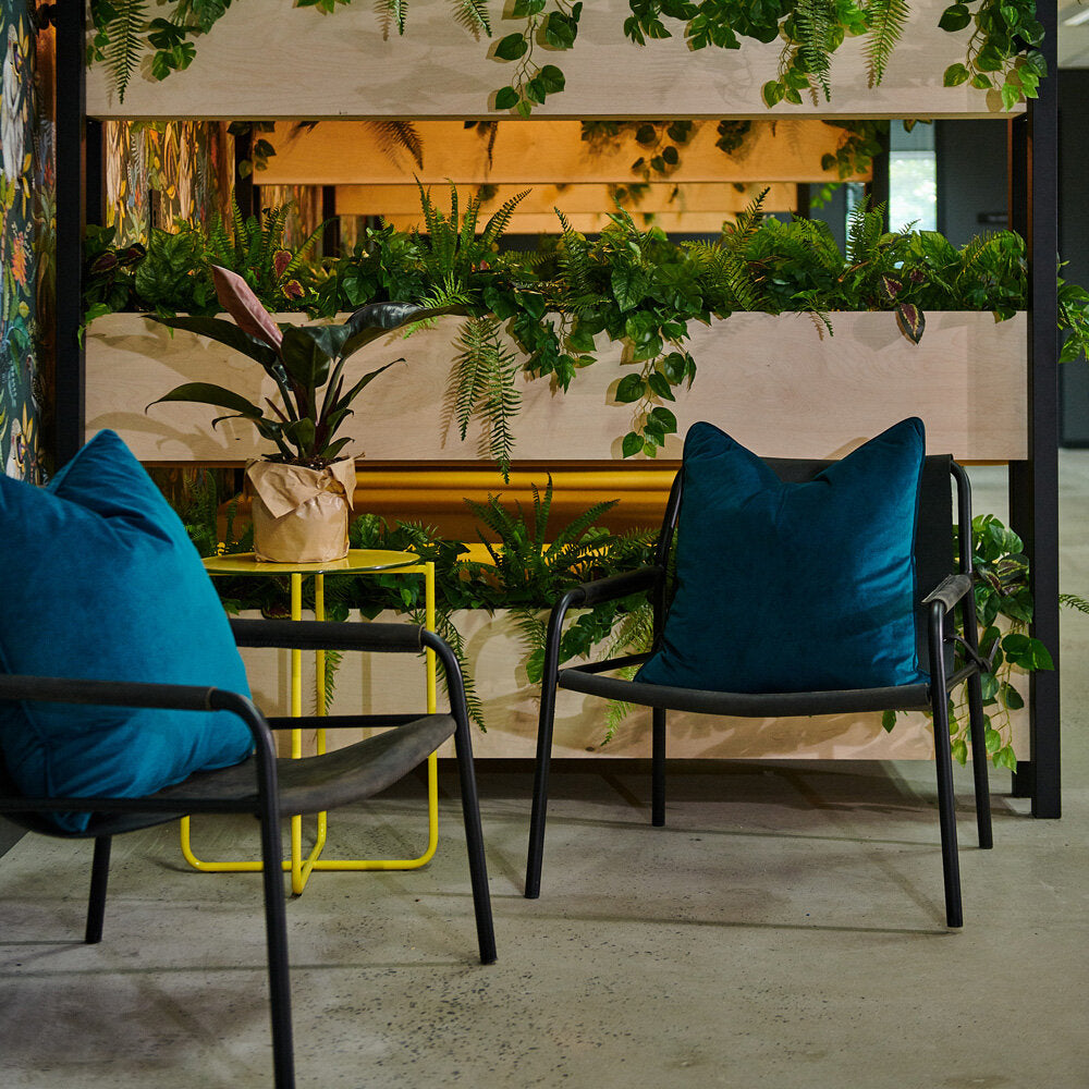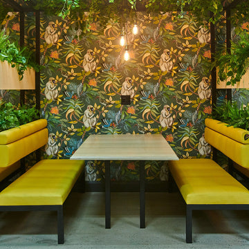 Ardmore jungle-inspired wallpapers added a whimsical element, while full-height green planted walls made the space feel alive.