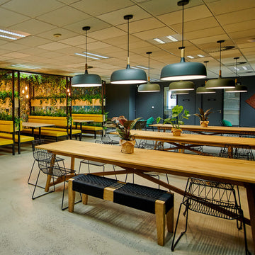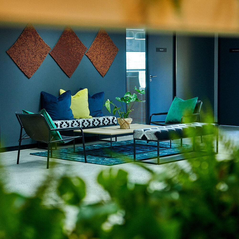 Contrast is always important to bring a space together, so we used woven timber beads, embroidered fabrics, jute carpets and ground concrete floors to usher in a tactile element to the open office space.