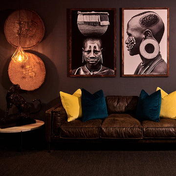 Bright pops of colour were used in the palette to mirror the naturally colourful animal species found in these locations, but also to offset the warm, earthy colour tones and monochromatic photographic artworks.