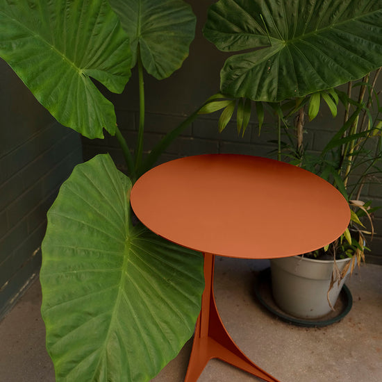 This quirky little table is our version of a modern side table that fits perfectly over the arm of a couch so you can work on a laptop in comfort or have a place for that cup of tea and a cookie when you are chillin infront of the tele. Constructed in 4mm mild steel with a powder coated finish. Available in colours: Sunshine Yellow, Mustard, Azure Blue, Turquoise Blue, Forest Green, Terracotta, Light Grey, Black, White.